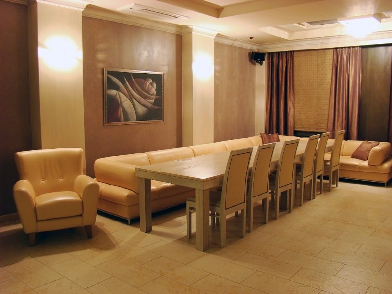 Не хочется в бассейн? Не проблема! Вместо этого можно провести время в нашей комнате отдыха. Мы постарались создать здесь комфортный, стильный интерьер из максимально натуральных, экологичных материалов, выбрать мебель, которая будет одновременно удобной и красивой. Надеемся, что вам понравится! Для создания настроения у нас есть бильярд и караоке. Также у нас работает бар, где вы можете заказать блюда русской и японской кухонь. Только не забывайте, что плотная трапеза непосредственно перед посещением парной - это не самая хорошая идея, согласно мнению терапевтов. А вот после парной она совсем не повредит!