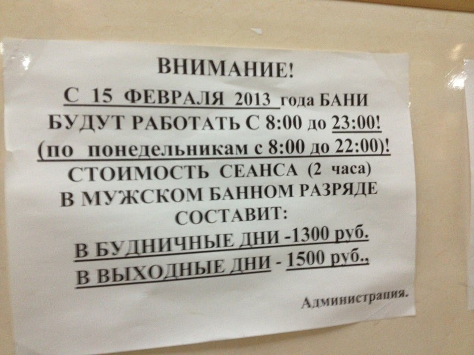 1700 р. за 2 часа?!! Заболели, что ли? Бани специально для спекулянтов переделаны?